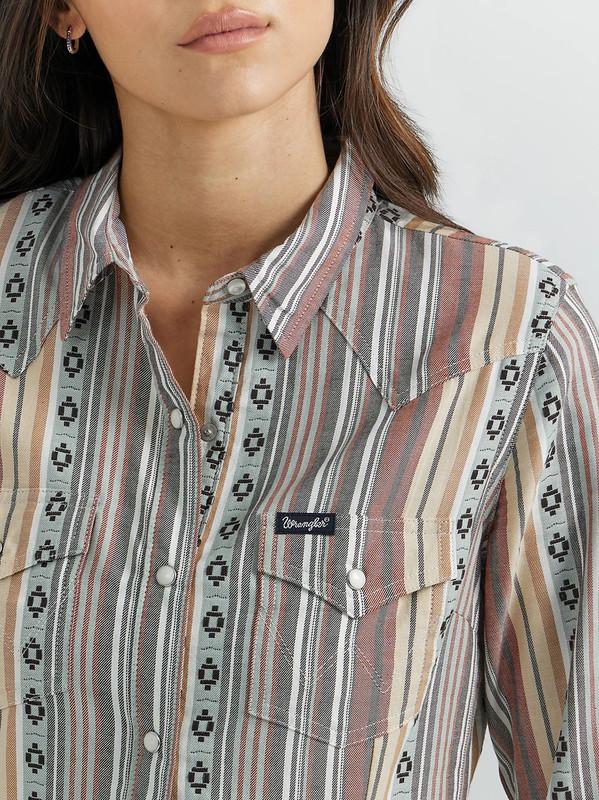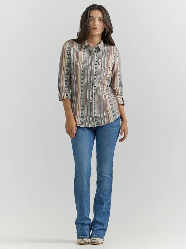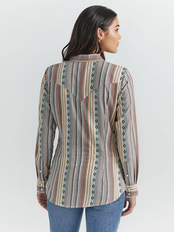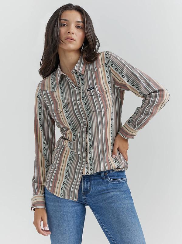 Wrangler Women's Pink & Blue Striped Retro Snap Western Shirt