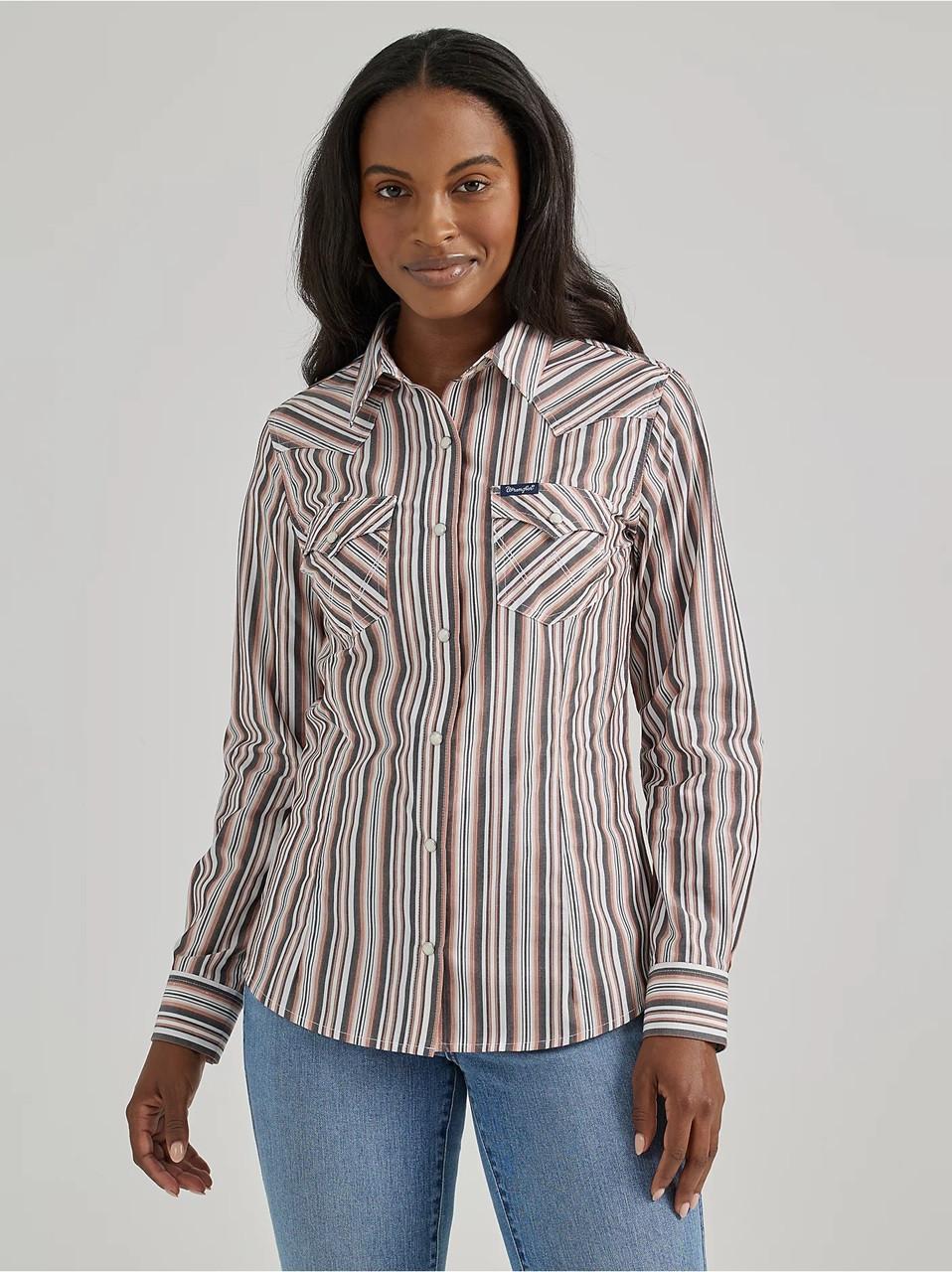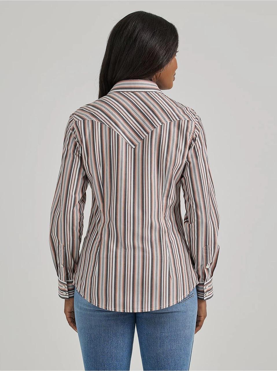 Wrangler Women's Pink Grey Metallic Stripe Slim Western Snap Shirt