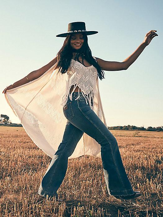 Flattering from every angle, the Women’s Wrangler Retro® Bailey High Rise Trouser Jean is a best-kept secret for ladies who love volume. These denim trousers are crafted from a cotton blend with just a hint of stretch for all-day comfort. They come with a high-rise silhouette, a close fit through the thigh, and a 20.5” flared leg full of vintage vibes. Plus, the five-pocket styling, “W” pocket stitching, and logo patch bring an unmatched level of Western authenticity.